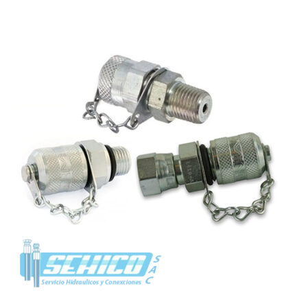 Acople Testeo Americano o también conocido como Diagnostico cara plana, conexiones diseñadas para medir la presión interna en sistemas hidráulicos, detectar fugas y realizar diagnósticos generales.